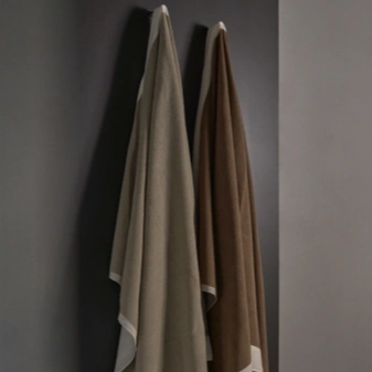 Vipp-håndklærne er vevd i en myk bomullsblanding med høy kvalitet, god absorbering og behagelig mykhet. Det enkle, ensfargede designet med kontrastkant fullendes av en praktisk tekstilstropp.