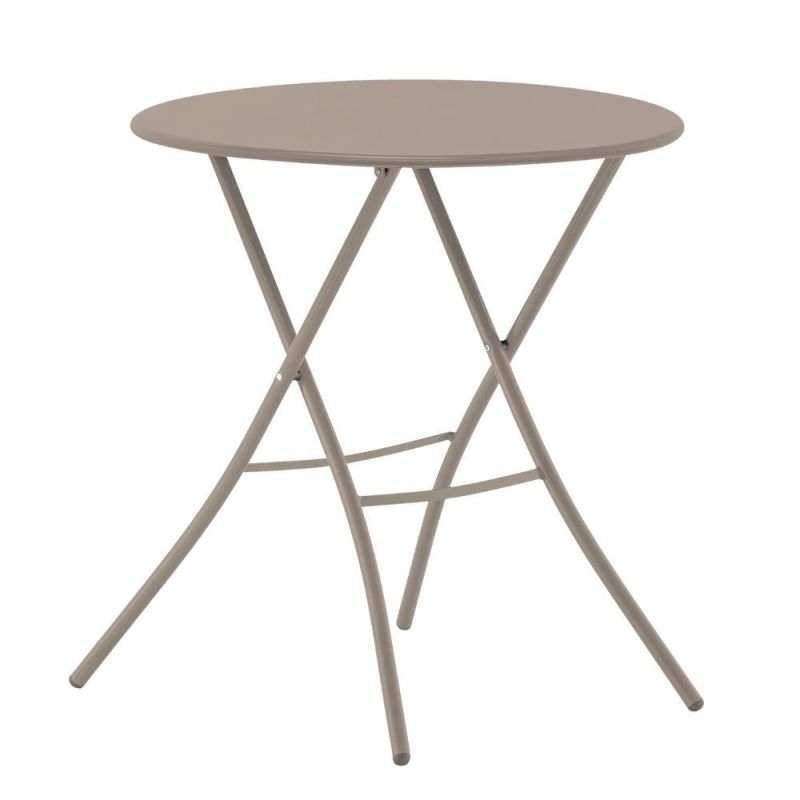 Rundt og sammenleggbart utendørsbord som er plassbesparende og enkelt å oppbevare. Understell i stål med en høyde på 70 cm. Fås i flere forskjellige farger.