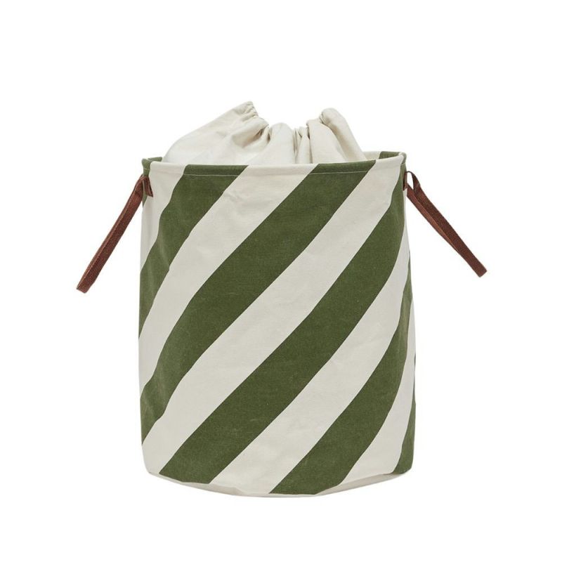 Sakki-kurven kombinerer funksjonalitet og lekent design. Den har et stripete mønster og en snørelukking som gjør det enkelt å organisere og transportere dyner, leker eller andre gjenstander. En praktisk og dekorativ løsning som passer inn i ethvert hjem.