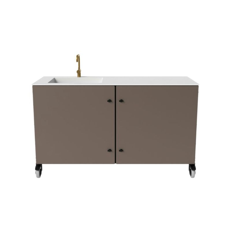 Norrvik utekjøkken fås med ett, to eller tre skap i værbestandige materialer, klare til utebruk hele året. Skapene har tette dører og justerbare hyller (bortsett fra vaskemodulen). Velg mellom seks farger og en robust, hvit Kerrock® bordplate som er varmebestandig, ripebestandig og enkel å rengjøre. Alle modellene har hjul, kan kombineres og krever minimalt med vedlikehold. Designet og produsert i Danmark. Leveringstid: 48 uker.