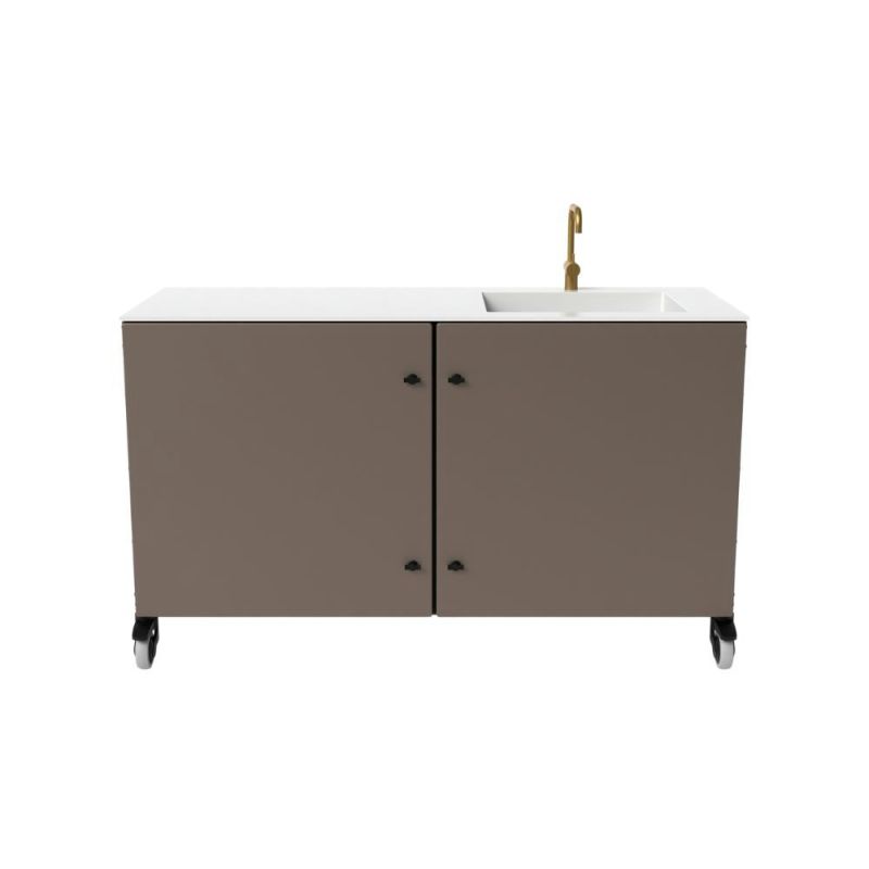 Norrvik utekjøkken fås med ett, to eller tre skap i værbestandige materialer, klare til utebruk hele året. Skapene har tette dører og justerbare hyller (bortsett fra vaskemodulen). Velg mellom seks farger og en robust, hvit Kerrock® bordplate som er varmebestandig, ripebestandig og enkel å rengjøre. Alle modellene har hjul, kan kombineres og krever minimalt med vedlikehold. Designet og produsert i Danmark. Leveringstid: 48 uker.