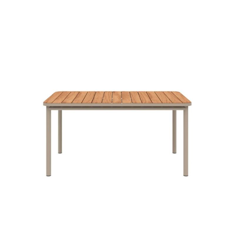 Kirra spisebord er designet for utendørs bruk og kombinerer pulverlakkert aluminium med vakkert teak. Den lette og rustfrie aluminiumsrammen gjør bordet enkelt å flytte, mens teaktreet tilfører varme og får en elegant, naturlig patina over tid. Med sitt harmoniske samspill mellom funksjon og estetikk er Kirra spisebord det perfekte midtpunktet for koselige måltider og avslappende stunder med familie og venner.