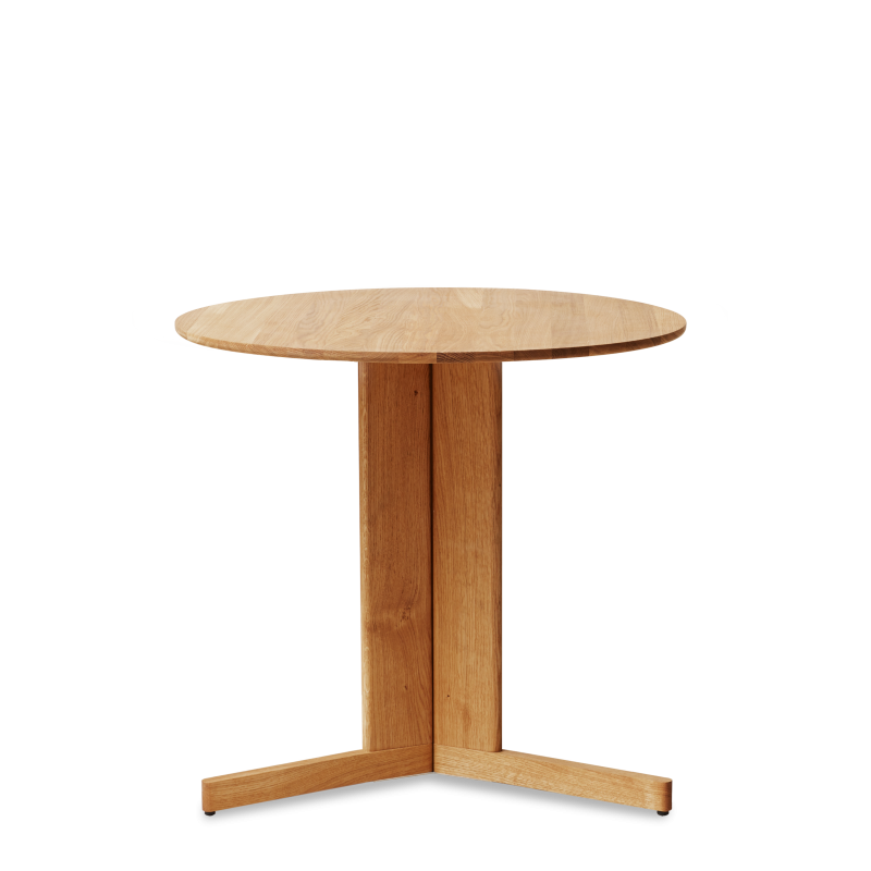 Et rundt bord med visuel kompleksitet Bordet er sammensat af et midterstykke af fritsvævende egetræselementer, der skaber en kontrast til det lette design. De tre ben giver både stabilitet og fri plads, så man kan sidde komfortabelt rundt om bordet uden at blive hæmmet. Bordet er alsidigt og velegnet til Privat, kontor eller café/hotel brug. Vi prioriterer bæredygtighed og vægter nøje vores valg af materialer. Læs mere i vores bæredygtighedserklæring.