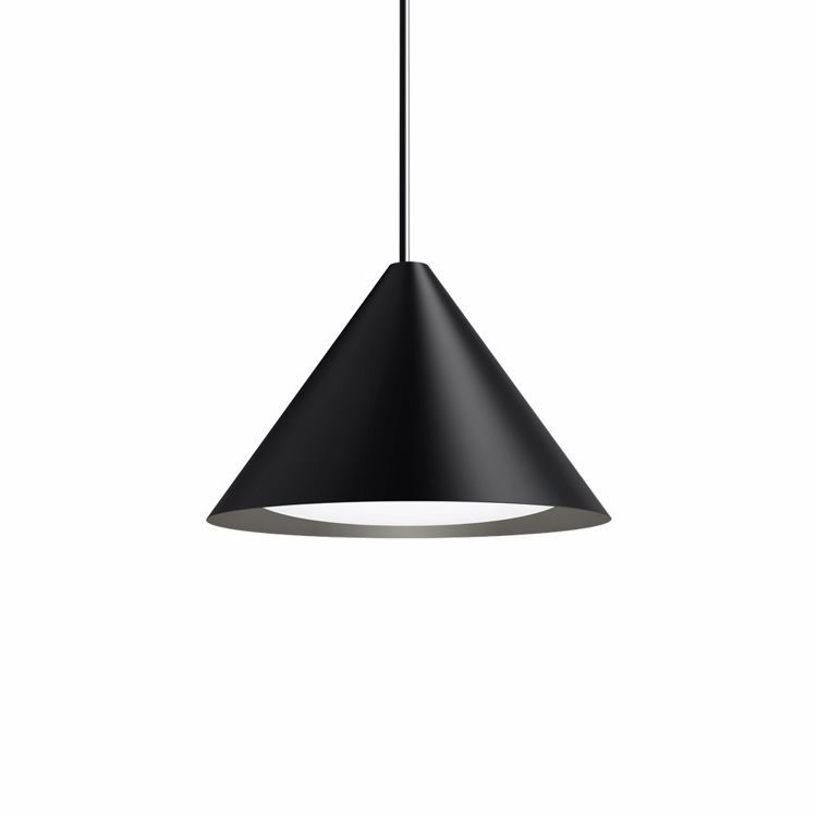 Kjeglen fra Louis Poulsen er designet av Jakob Lange og finnes i 4 størrelser, som spenner fra en veldig liten på 17,5 cm i diameter og helt opp til 65 cm. Pendelen er laget av tegnet aluminium og er våtlakkert sort eller hvit. Lampen er perfekt for bruk på mange forskjellige måter. Bruk den enten som en klynge, kombinert på tvers av størrelsene, eller som en enkelt lampe.