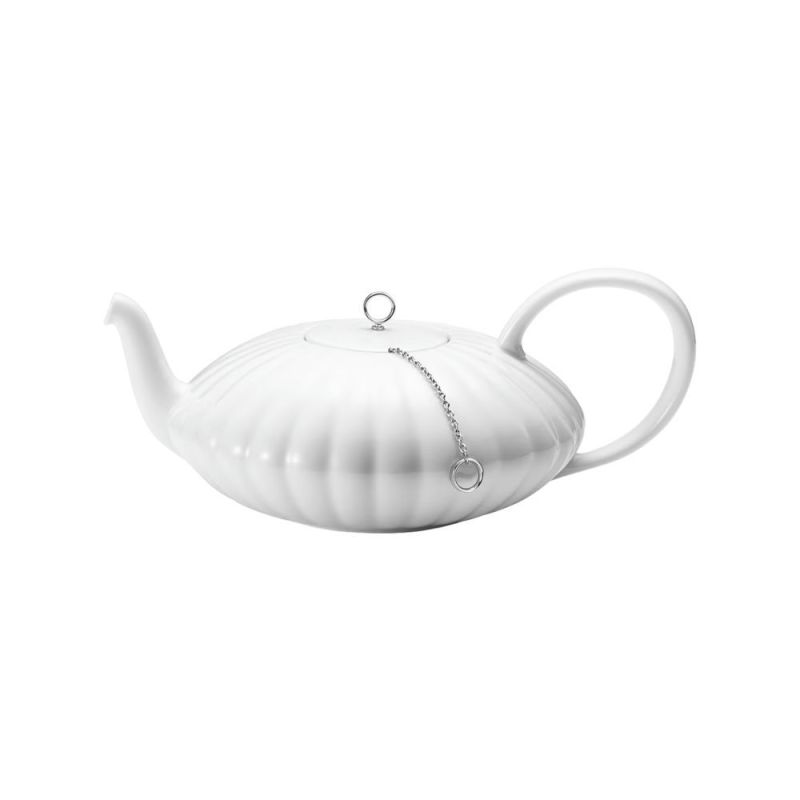 Denne elegante tekannen i porselen kombinerer Sigvard Bernadottes klassiske designstil med inspirasjon fra japanske teseremonier. Tekannen har et særegent håndtak og leveres med en sil i rustfritt stål, festet med en kjede som holder seg kald under bryggingen, perfekt for enkel og stilig tebrygging.