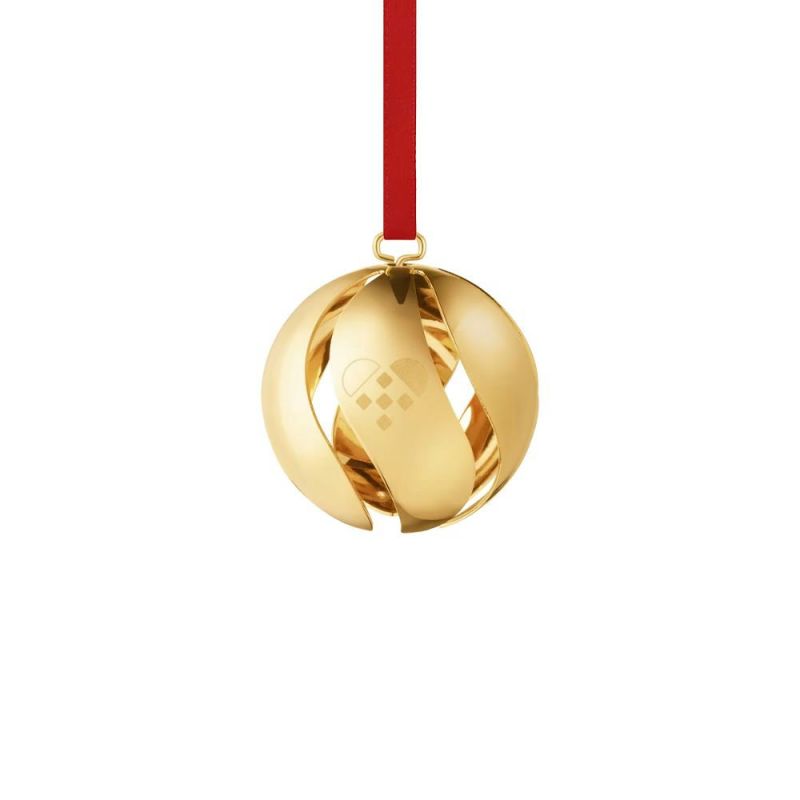 Denne julekulen fra julekolleksjonen 2025 er belagt med 18 karat gull og laget med elegante utskjæringer, noe som gir en moderne tolkning av den klassiske julekulen. Det graverte, flettede julehjertet gir et tidløst og stemningsfullt uttrykk. Julekulen leveres med to bånd, ett i den tradisjonelle røde fargen og ett i kolleksjonens spesielle burgunderfarge.