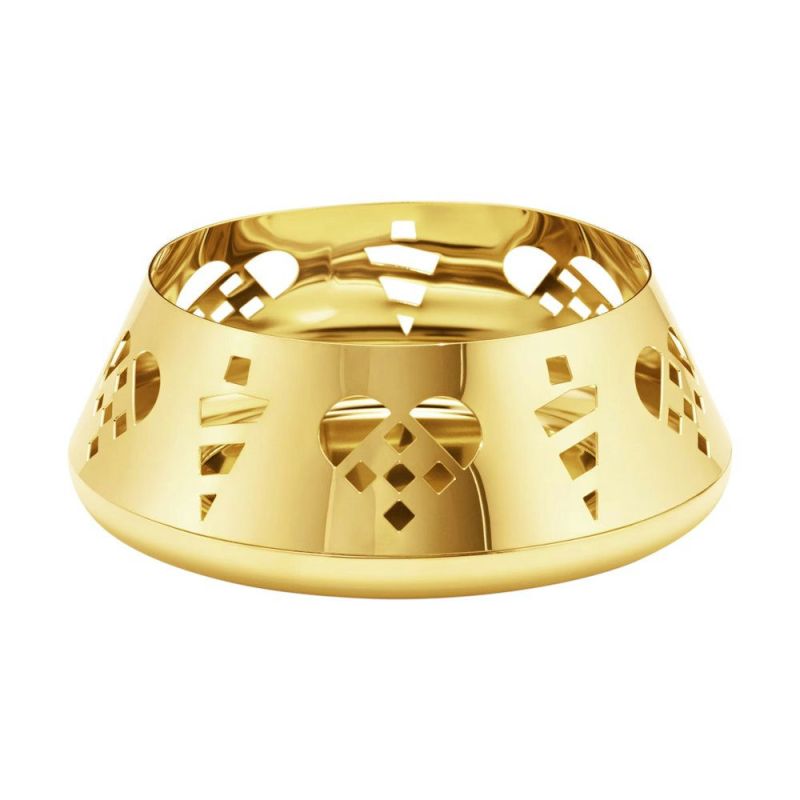 Denne gnistrende staken, belagt med 18 karat gull, passer perfekt til blokklys og fremhever elegant den varme gløden fra det levende lyset. Designet er inspirert av klassiske danske julemotiver, og lysestaken har vakre utskjæringer av flettede julehjerter og kremmerhus, som skaper en hyggelig stemning i ditt hjem.