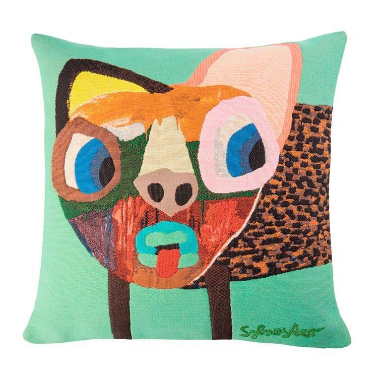 I anledning Leif Sylvesters 80-årsdag har Poulin Design produsert denne vakre puten med et fargerikt motiv av Leif Sylvesters kunstverk «Småplettet Hund». Siden 2015 har Poulin Design vært eneforhandler av de eksklusive putene fra franske Jules Pansu i både Skandinavia og Tyskland.