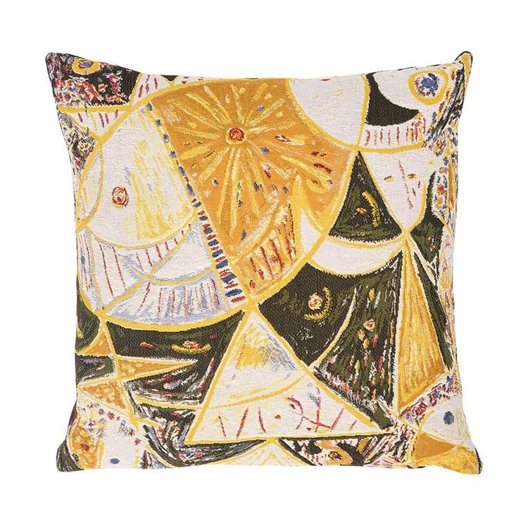 Egill Jacobsens kunstværk, Fantasi i brunt, er her gengivet på en eksklusiv pude fra Poulin Design. Puden er vævet på det populære franske væveri, Jules Pansu, der har modtaget flere anerkendelser for deres smukke vævninger.
