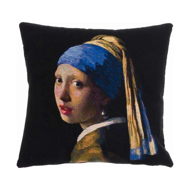 Pige med perleørering er et enestående og velkendt maleri fra Johannes Vermeer. Motivet med den udtryksfulde pige er et oliemaleri fra 1665, som her fås som en smuk vævet pude fra Poulin Design. Poulin Design puderne er yderst dekorative, med mange smukke motiver fra anerkende og velkendte kunstnere, som på en vævet pude, får et helt nyt liv.