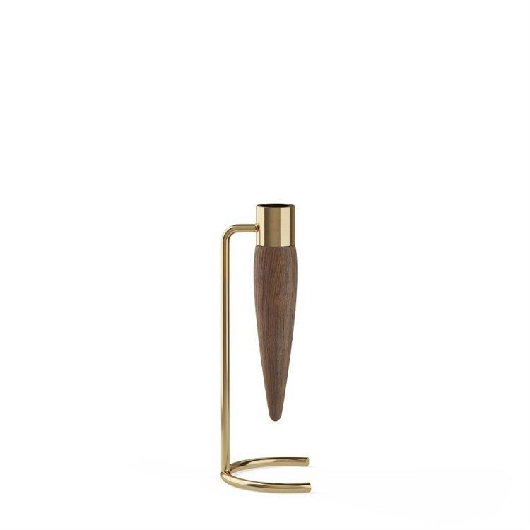 Lysestagen i elegante former med Umanoffs farvorit kontraster - Messing og valnød!