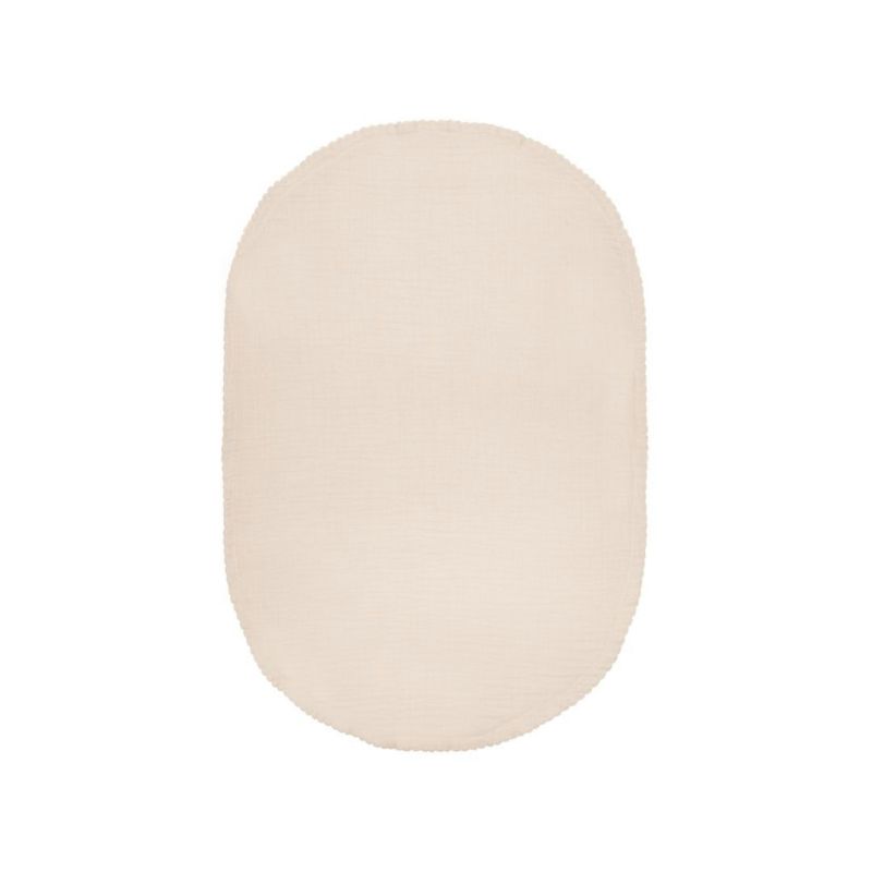 2 stk. Ovale, vendbare stellematter med elegant blondekant, designet for å passe perfekt i både form og størrelse til vårt KAI stellepute. De fungerer som ekstra beskyttelse i tilfelle en liten ulykke. Fargen er krem, som også matcher både vår KAI møbelkolleksjon og våre andre tekstiler. Mattene er laget av sertifisert økologisk bomullsmuslin. Med fire lag er de ekstra tykke og myke, noe som gjør dem spesielt absorberende og behagelige å bruke.