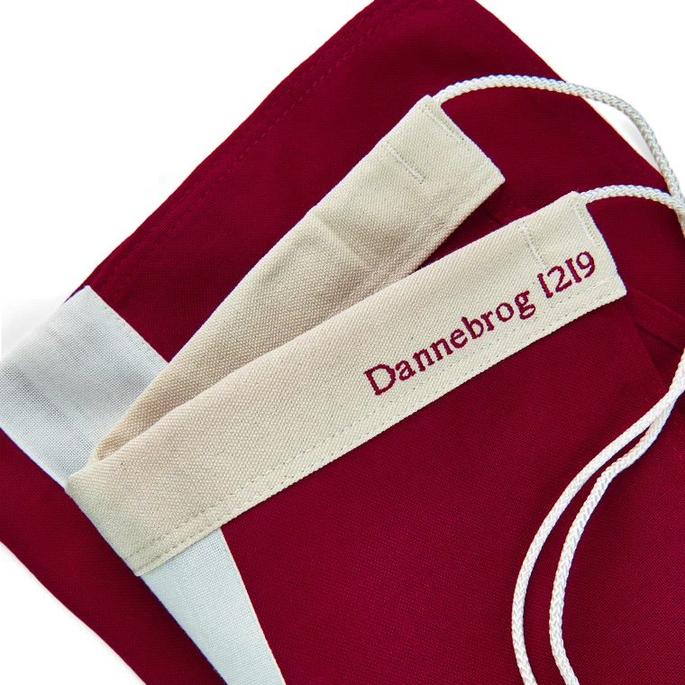 Dannebrog 1219 Jubileumsflagg for liten flaggstang. Tid for et nytt flagg? Dannebrog 1219 er et spesielt jubileumsflagg, laget for å feire Dannebrogs 800-årsjubileum. Den har en brodert Dannebrog 1219-detalj på en kraftig linning av lerret og en dypere rød farge, inspirert av de historiske karmosinrøde marineflaggfargene. Flagget måler 38 x 50 cm og leveres med en fast flagglinje i en vakkert brodert stoffpose.