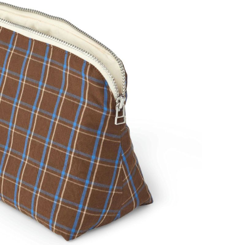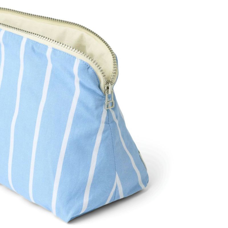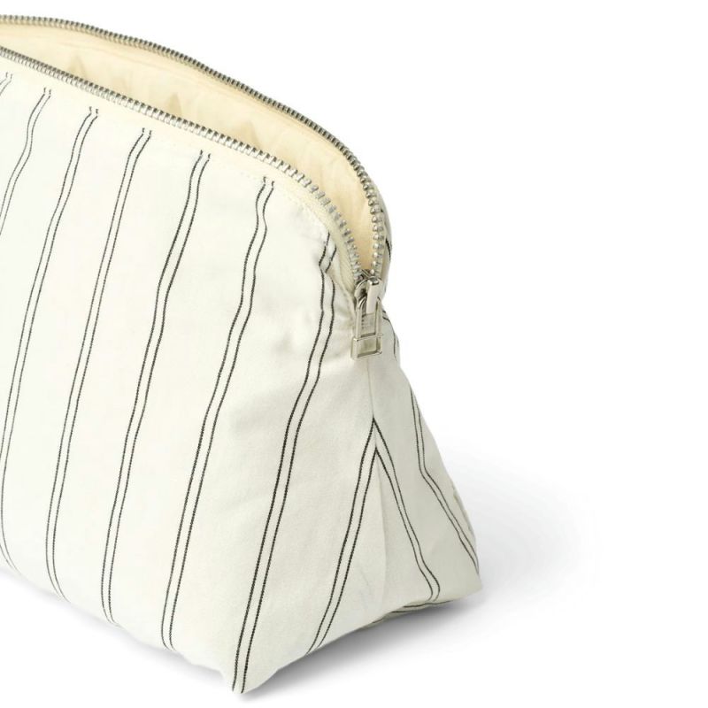 Elegant og enkel toalettmappe i myk, quiltet bomull med et nedtonet utseende. Mappen har hvit bomullsforing, et diskret logomerke på forsiden og praktisk glidelåslukking som går delvis ned langs sidene for enkel tilgang og oversikt. Bruk den til å organisere toalettsakene dine hjemme eller som stilig tilbehør i kofferten.