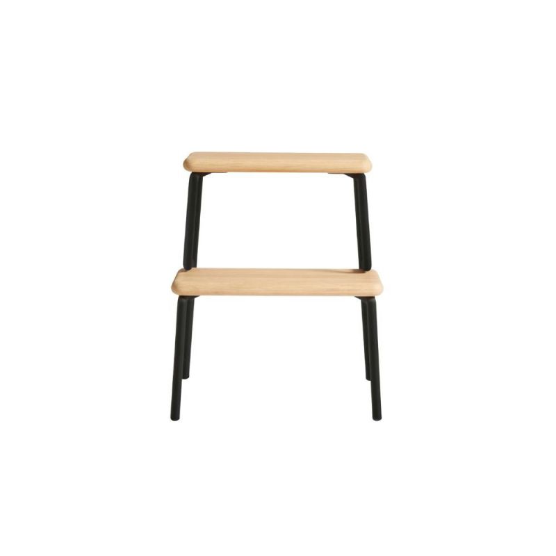 Slalom er en allsidig krakk med en vakkert buet metallramme og heltre eikeplanker. Den er enkel å flytte og fungerer perfekt som en ekstra hjelper i garderoben, som barnestøtte på kjøkkenet eller som et stilig sidebord på soverommet. Krakken er laget av hvitpigmentert, lakkert eik med svartlakkerte ben, et funksjonelt og estetisk tilskudd til hjemmet.