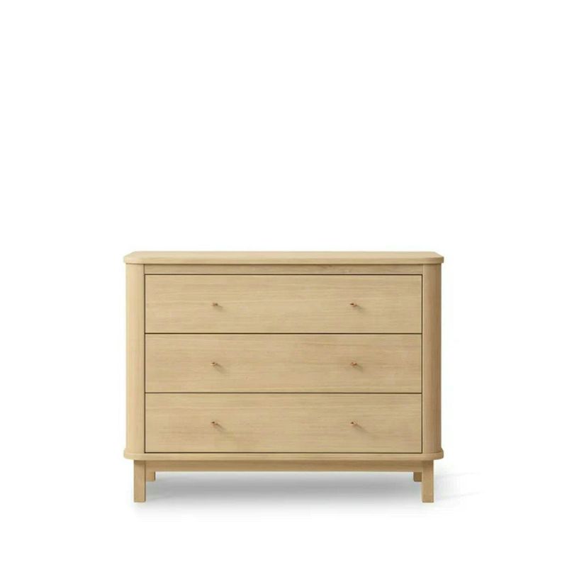 • Materiale: Trekommode med 3 skuffer er laget av MDF finert med eik, med ben og kroker i hvitoljet massiv eik. Innsiden av skuffene er laget av hvitmalt MDF. Naturlig tre kan ha forskjellige toner og utseende. SmÃ¥ tonale forskjeller pÃ¥ tvers av delene kan forekomme. Vær oppmerksom pÃ¥ at treoverflater kan falme i direkte sollys. De ikke-synlige skruene gir kommoden et rent og eksklusivt design og er spesielt karakteristiske for Oliver Furniture. Stilen er moderne med rene linjer, avrundede former og raffinerte detaljer som fullnarvet skinnhÃ¥ndtak og integrerte kroker. En spesiell soft-close-funksjon demper lukkingen av skuffene slik at smÃ¥ fingre ikke kommer i klem. Kommoden er produsert i Europa og overholder europeiske sikkerhetsstandarder og normer. Kommoden er behandlet med hvitpigmentert olje basert pÃ¥ linfrø-, solsikke- og jojobaolje. Innsiden av skuffene er malt med giftfri, REACH-sertifisert maling.
