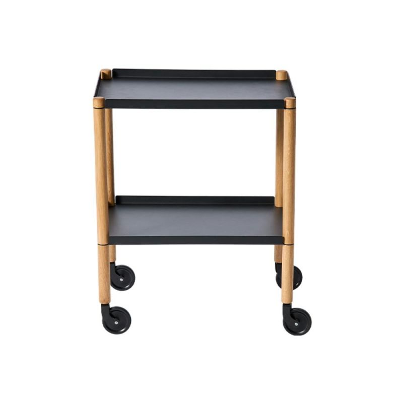 Koble til tabellen. Et funksjonelt brettbord med rå, industrielle detaljer og skandinavisk estetikk. Den er designet med to metallbrett og eikeben, og kombinerer eleganse med funksjon. De praktiske hjulene gjør bordet enkelt å flytte rundt, perfekt som barvogn, sidebord eller oppbevaringsbord. Leveres flatpakket for enkel transport og montering.