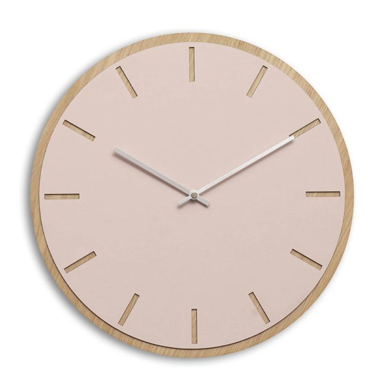 Væguret Powder med egetræ, fra Hemverk har en feminint og lyst udtryk, som giver et behageligt, minimalistisk og nordisk udtryk i indretningen. Væguret er fremstillet af lyst egetræsfiner med en linoleumsoverflade i sart rosa, som giver et legende og dekorativt udtryk.