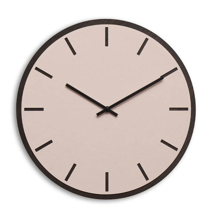 Veggklokken fra Hemverk i mørk eikefiner med en dekorativ linoleumsskive i pudder, som gir en fin kontrast. Klokken har en behagelig og lydløs bevegelse, noe som gjør den ekstremt anvendelig i rom som spenner fra soverommet til stuen.