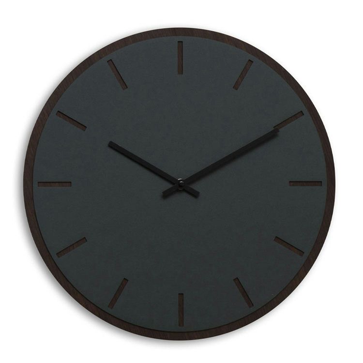 Veggklokken med en vakker mørk eikefinerbunn og en stilig overflate i mørkegrønn linoleum (Conifer) gir en unik og skarp kontrast til den moderne innredningen. Klokken passer for ethvert moderne hjem og kan lages med kombinasjoner av forskjellige visere, som hver gir et vakkert utseende.